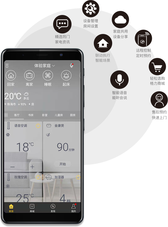 格力+APP是格力零碳 健康家智能设备管理平台。通过格力+随时控制家中智能设备,管理房间家电,与家人共享使用,打造专属智能生活场景。