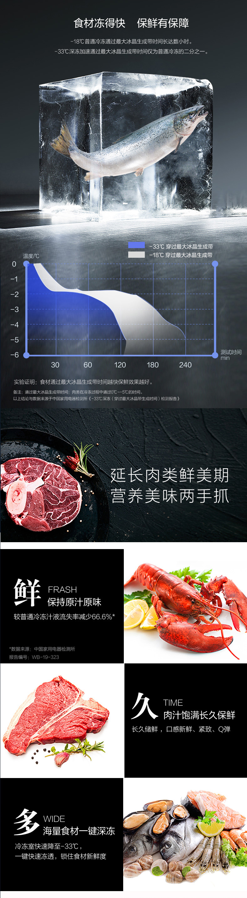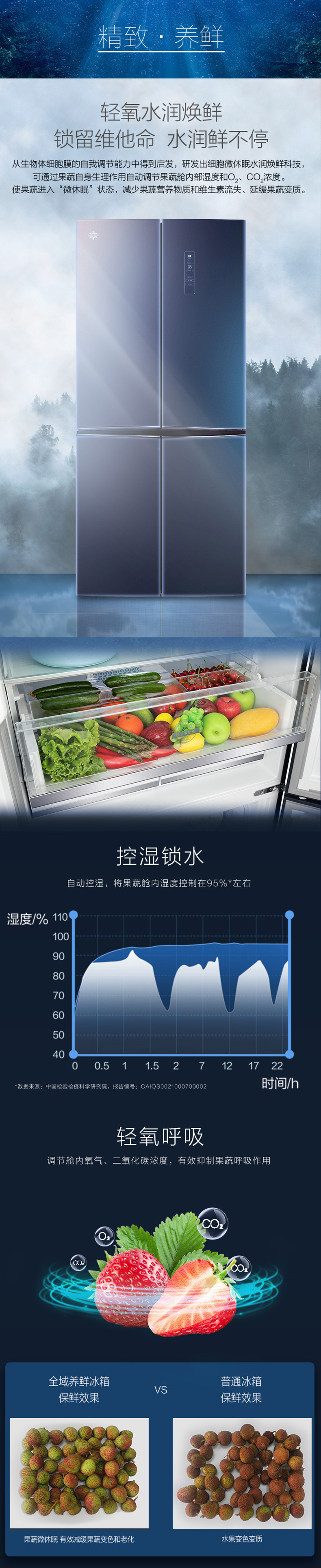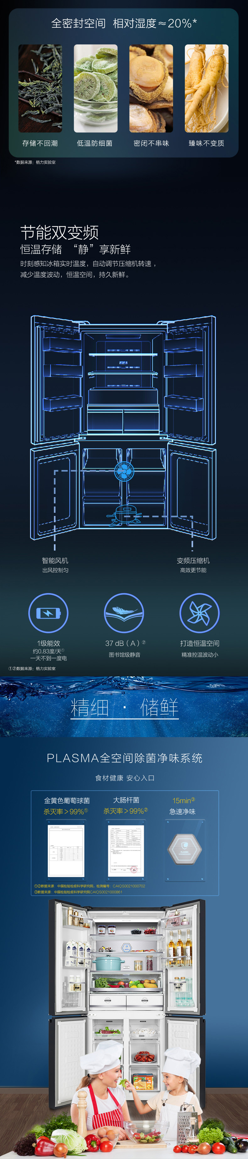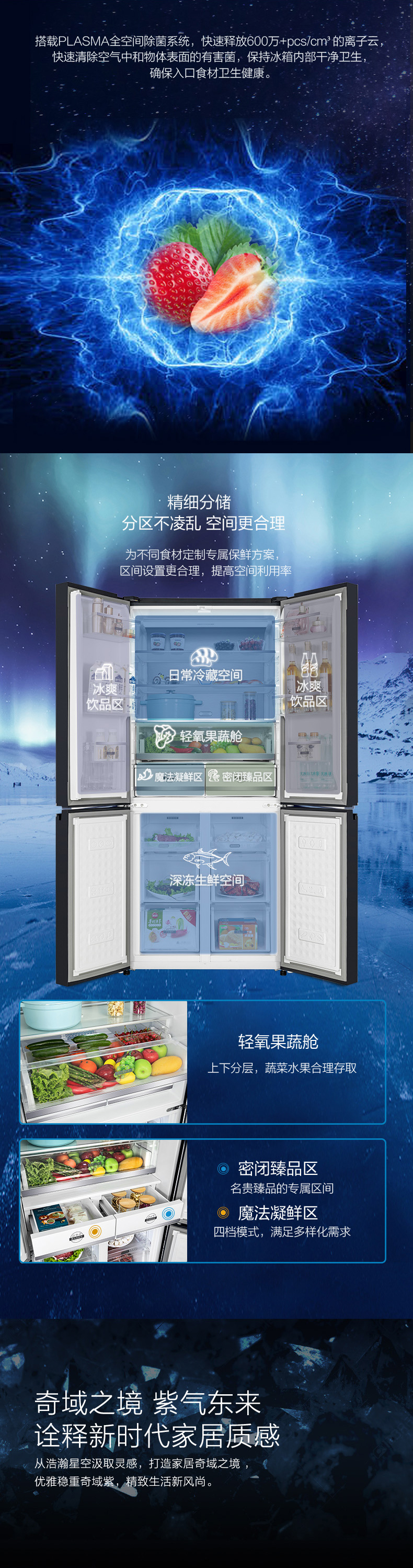 针对每种食材进行精细化分区,定制专属保鲜舱,涵盖肉类保鲜、果蔬保鲜、母乳储存、干货储存以及除菌净味五个维度,确保每一件食材的新鲜储存