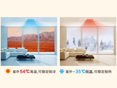 -35℃-54℃宽温运行,-25℃制热量100%不衰减,-35℃能够稳定制热,45℃制冷量不衰减,比普通多联机高25%,54℃能够稳定制冷。 |