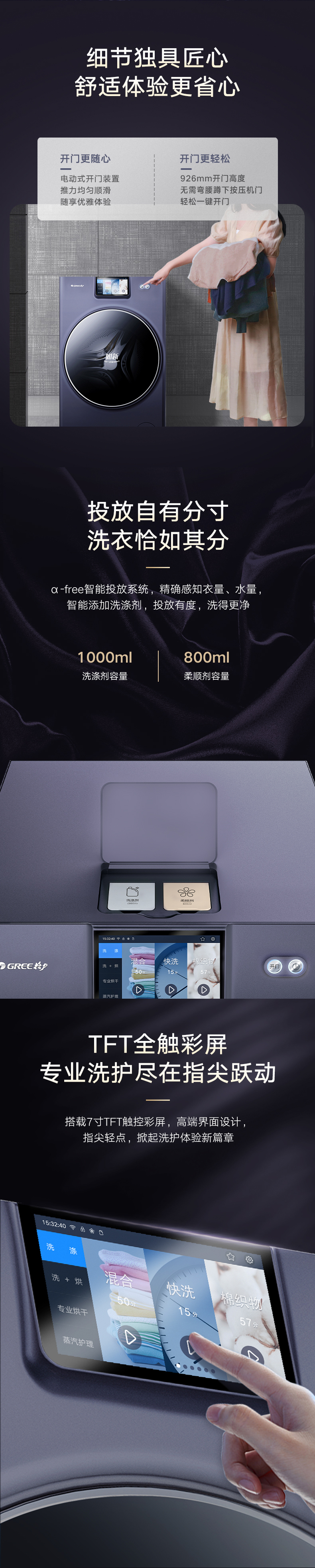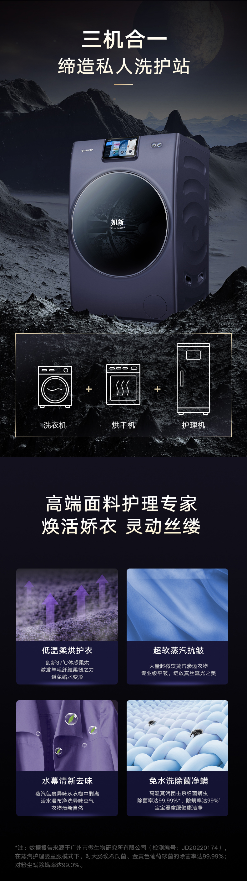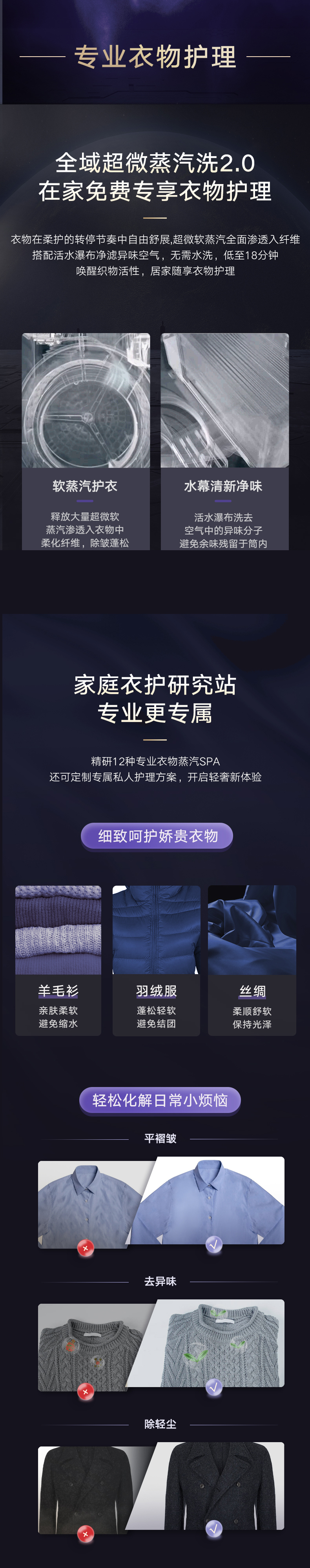 37℃低温柔烘不伤衣;全域超微蒸汽洗2.0;ICleaner全域智清洁