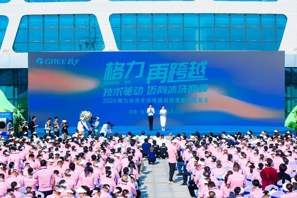 5月22日,以“格力再跨越,技术驱动,迈向冰洗巅峰”为主题的格力冰洗生活电器战略暨新品品鉴会在河南洛阳隆重举办。洛阳市副市长牛刚、格力电器董事长兼总裁董明珠以及经销商代表、消费者代表、媒体近1500余名嘉宾出席。