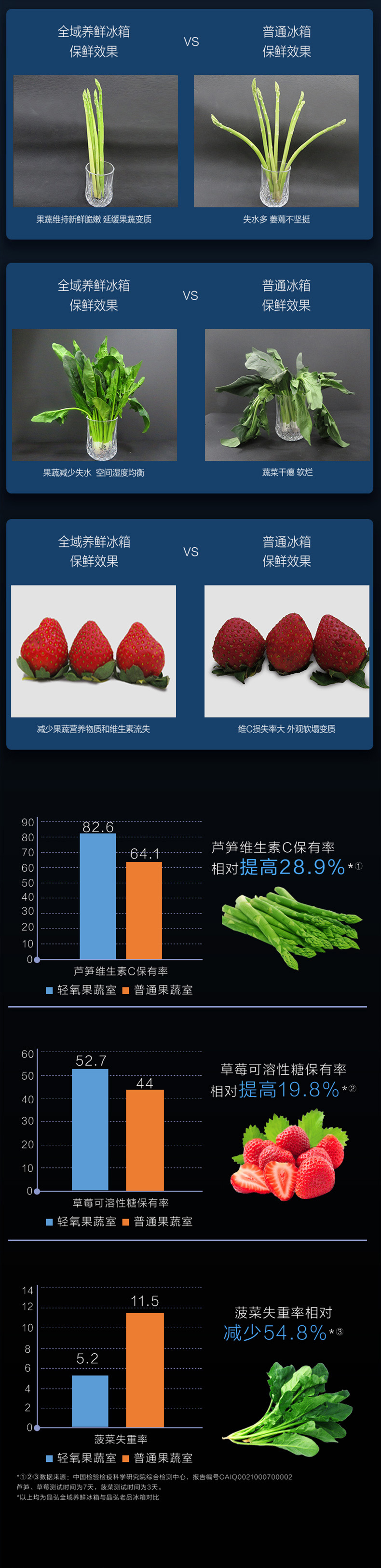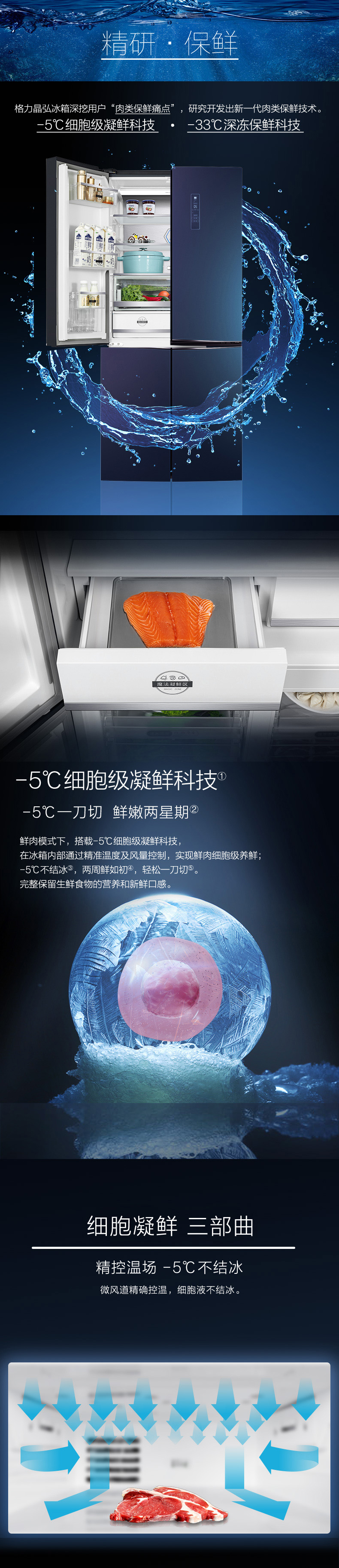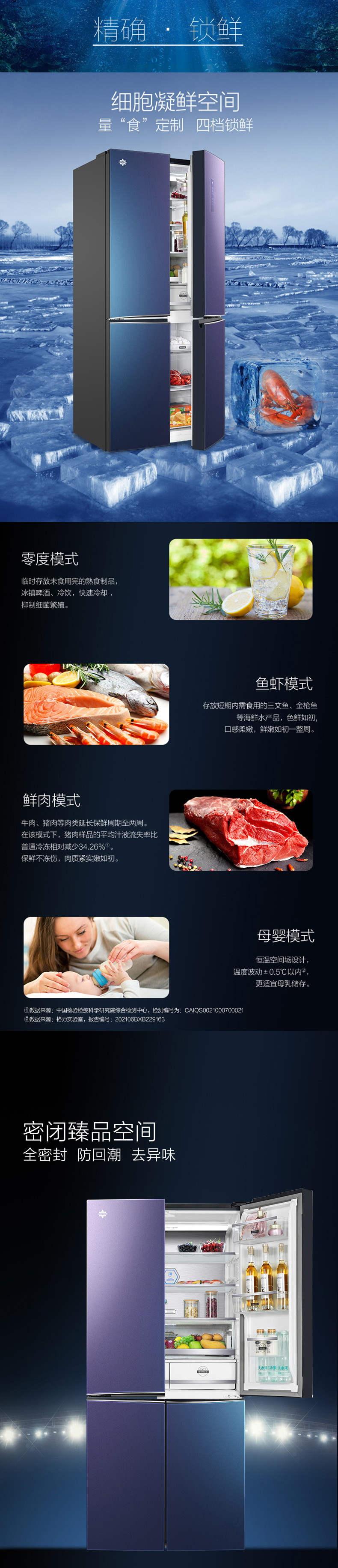 针对每种食材进行精细化分区,定制专属保鲜舱,涵盖肉类保鲜、果蔬保鲜、母乳储存、干货储存以及除菌净味五个维度,确保每一件食材的新鲜储存
