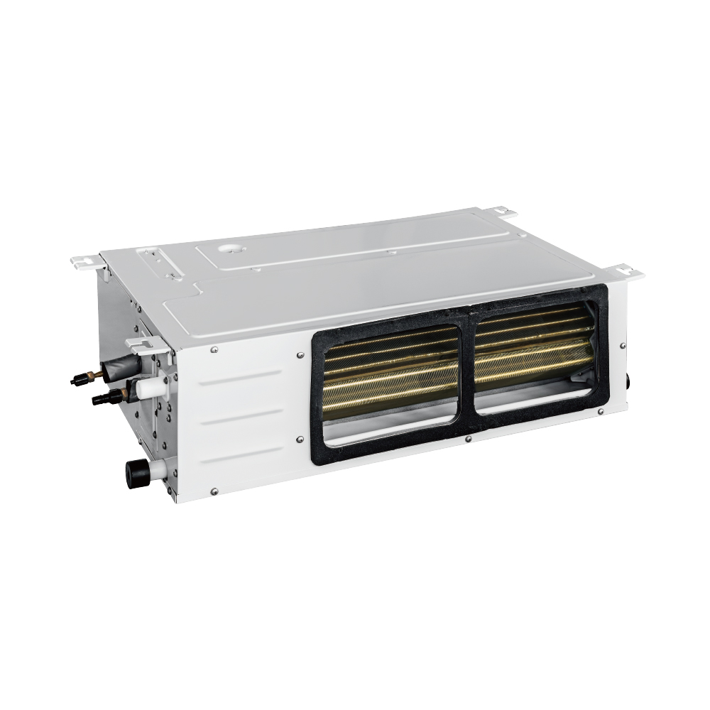 厨享内机采用金色防腐翅片换热器,抗腐蚀能力强,翅片采用宽间距设计,可减少油烟附着:换热器采用V型设计,使风速更均匀。