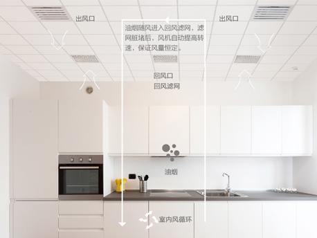 机组可智能检测风口油烟脏堵程度,并自动匹配风机转速,保证风量恒定,舒适不衰减。