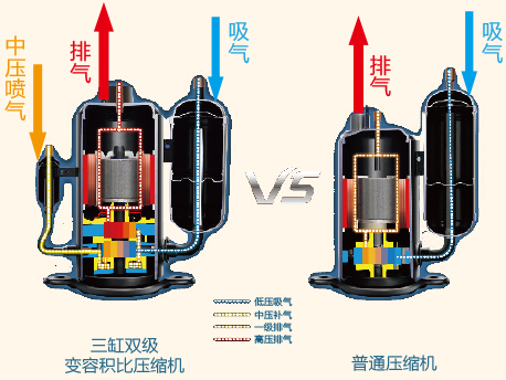铂韵家用多联机采用获得 “国际领先”的格力三缸双级变容压缩机技术,相比老款喷气增晗压缩机,它具有更强动力,更长寿命,更低噪音,更高效率。 |