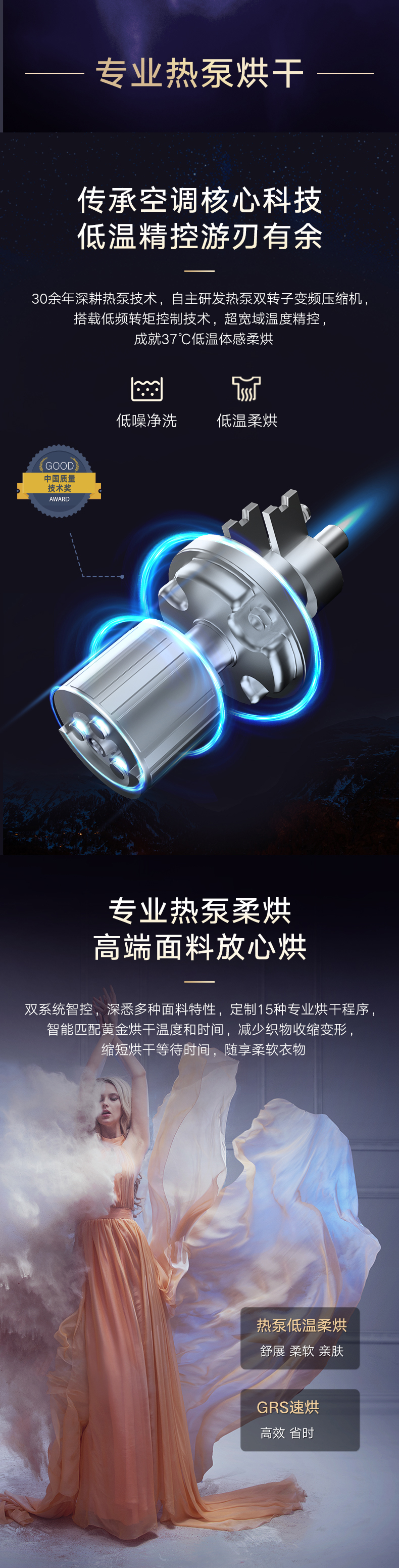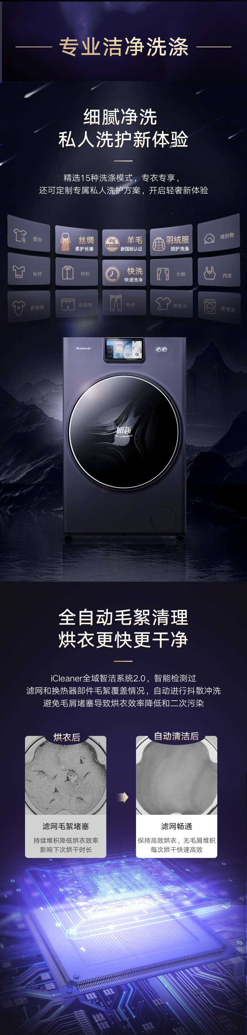 37℃低温柔烘不伤衣;全域超微蒸汽洗2.0;ICleaner全域智清洁